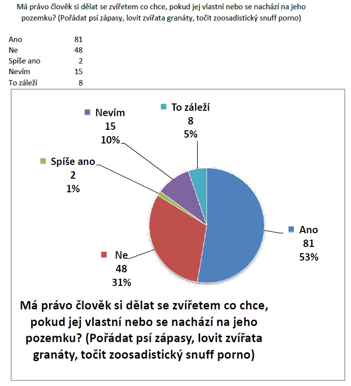 Otázka 11 – Má právo člověk si dělat se zvířetem co chce, pokud jej vlastní nebo se nachází na jeho pozemku? (Pořádat psí zápasy, lovit zvířata granáty, točit zoosadistický snuff porno)