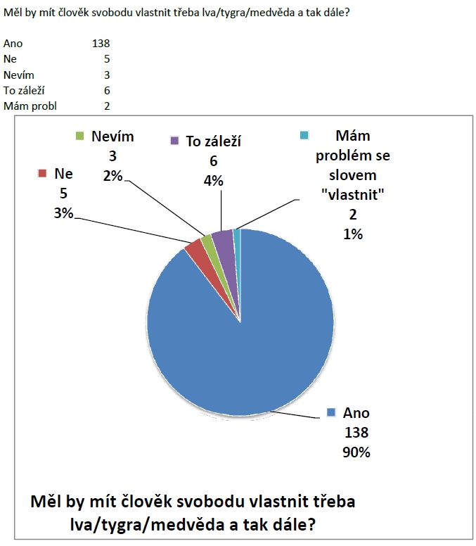 Otázka 15 – Měl by mít člověk svobodu vlastnit třeba lva/tygra/medvěda a tak dále?