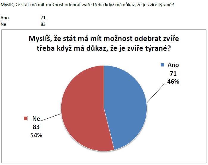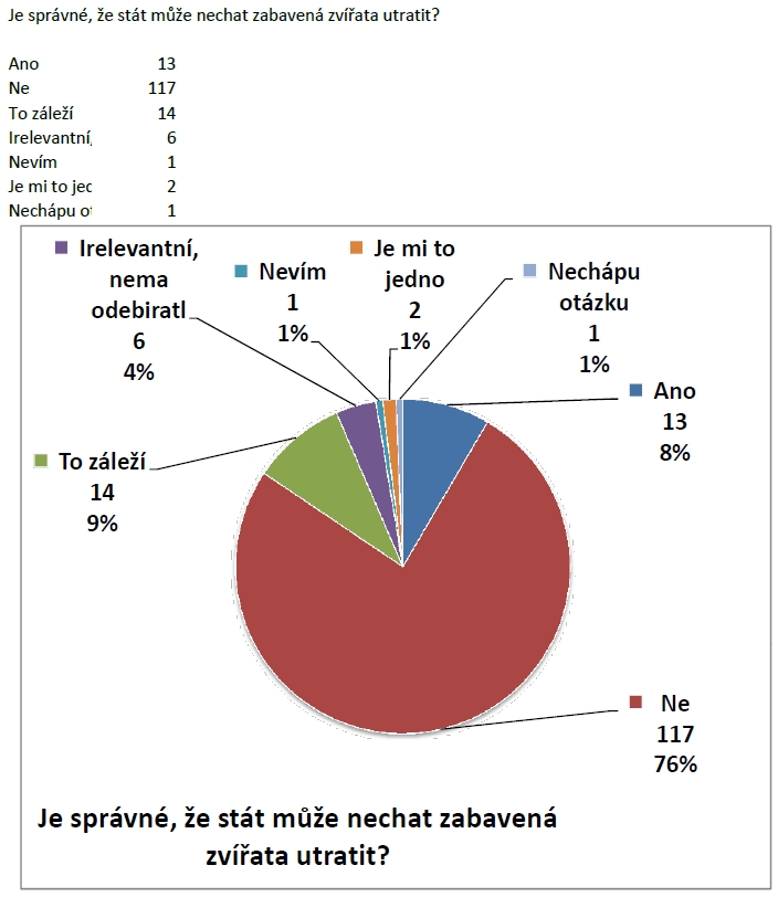 Někteří mi psali, že ta otázka nemá smysl, když už v předchozích odpovídali na to, že stát nemá mít ani možnost nám zvířata zakazovat, povolovat či nám je zabavovat (tedy pokud nejsou týraná), takže pochopitelně nesouhlasí s tím, aby je stát měl možnost utratit.