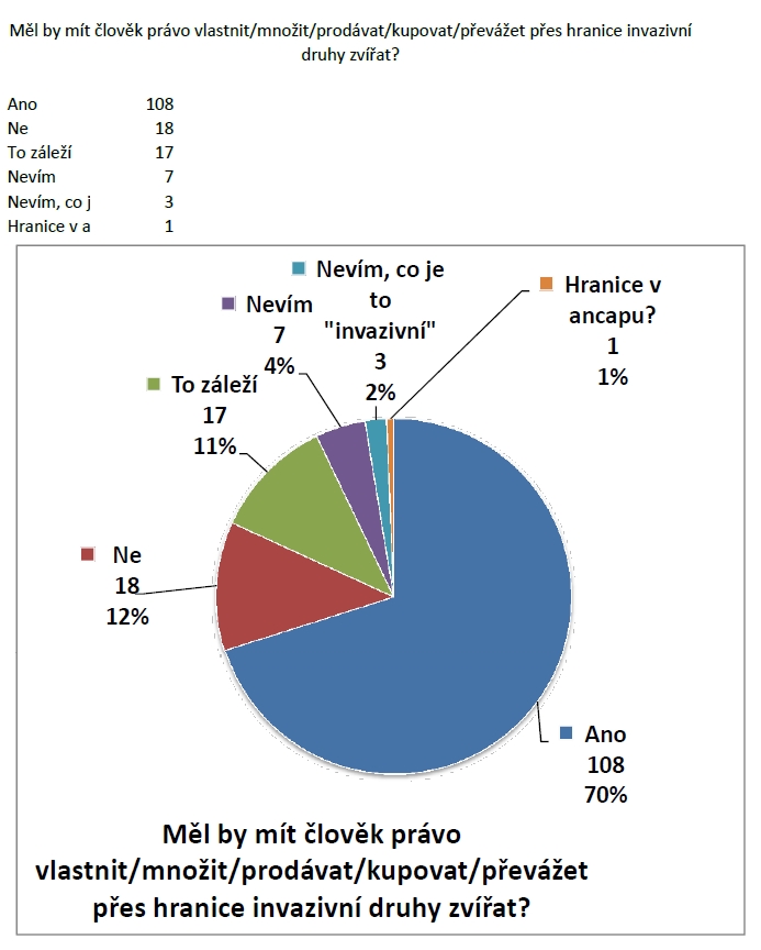 Třeba se mýlím a ta spojitost tam je, ale odmítám to brát automaticky jako fakt, protože mi to říkali v televizi. A v anketě je jasně vidět, že někteří tuto spojitost automaticky předpokládají. Dle některých je dokonce chovatel s invazivním druhem XYZ sám o sobě nebezpečný pro životní prostředí už je tím, že to zvíře vlastní.